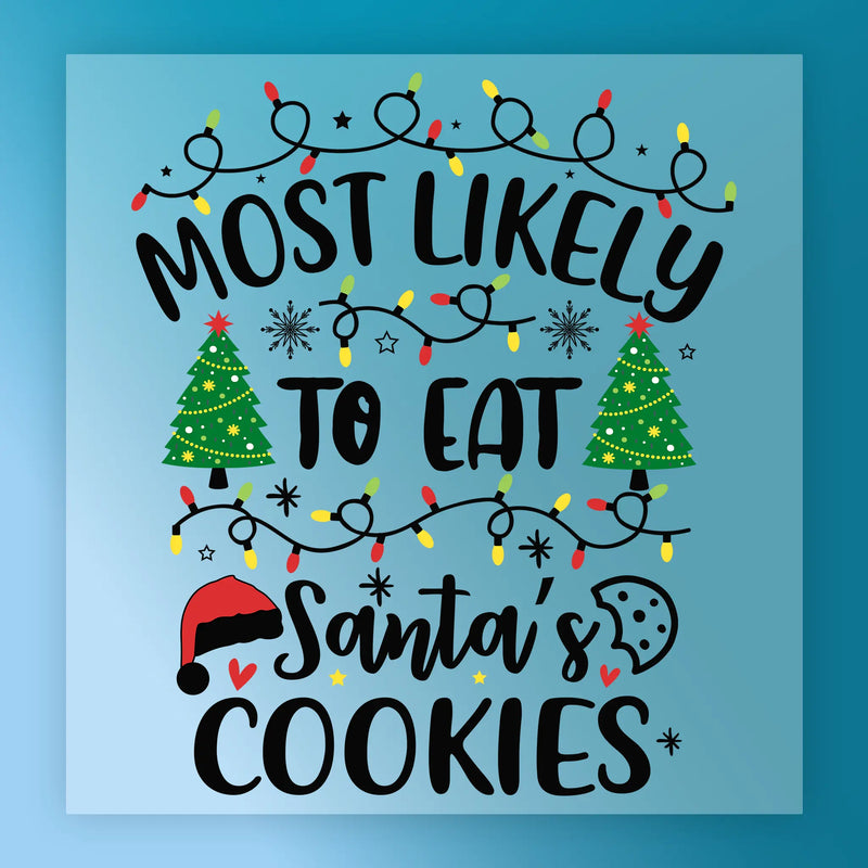 "Most Likely to Eat Santa's Cookies" - Ready to Press Christmas Design - InkMerge DTF Transfer
